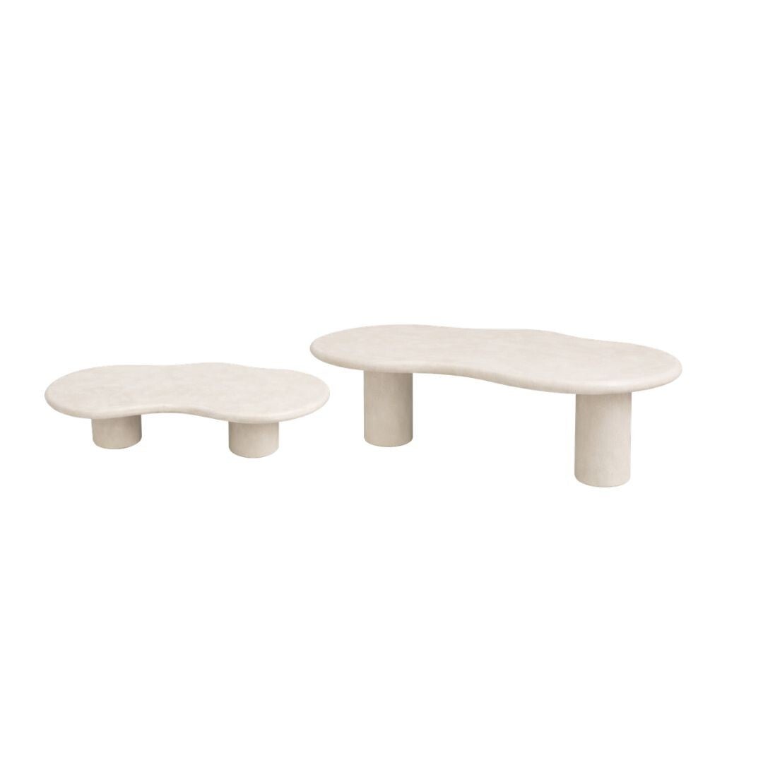 De Organic Tables Set is een ode aan vrouwelijke zachtheid, organische vormen en tijdloos design. Twee tafels, een eettafel en een salontafel. De vorm is aan de eene kant een mooie flow naar binnen en aan de andere kant een bolling naar buiten.