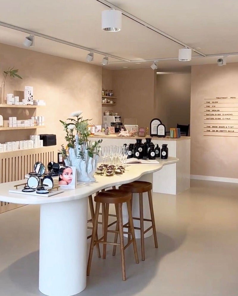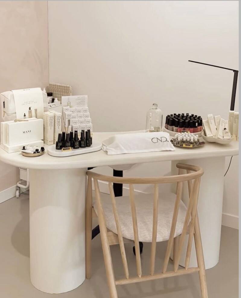 Voor house of glow hebben we het totale plaatje aan meubels geleverd. van zuilen, manicure tafel en een bar.