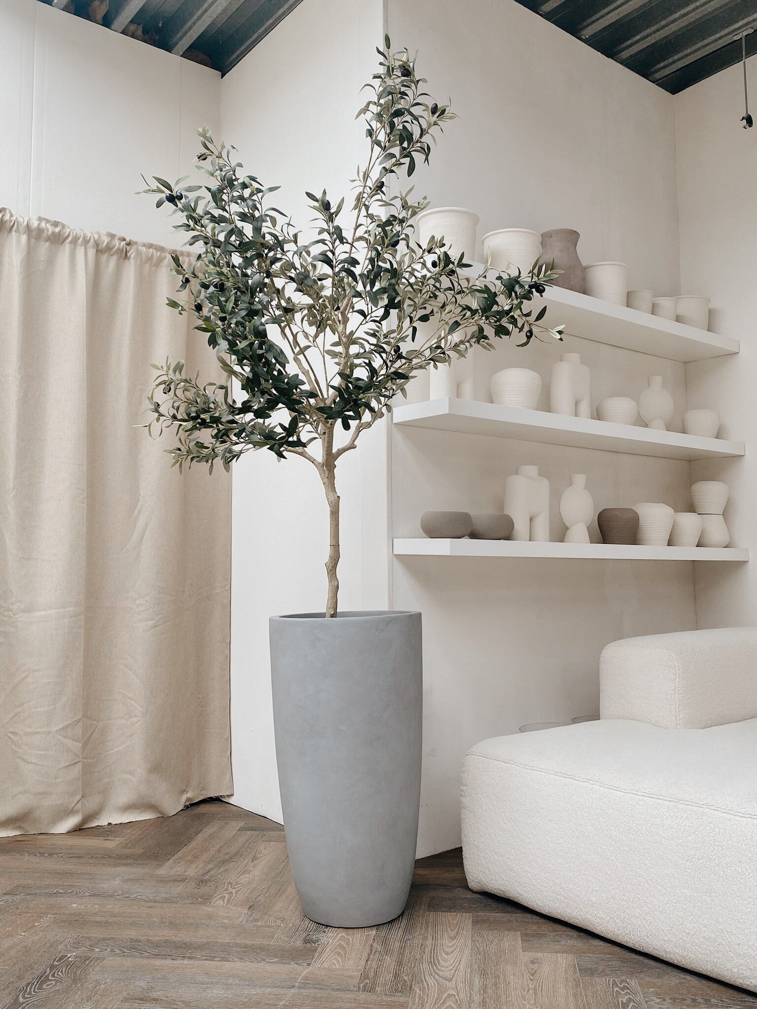 Deze prachtige potten vormen echte eyecatchers in elk interieur en zijn perfect te combineren met onze kunstmatige olijfbomen. Voor een optimaal resultaat kun je de pot opvullen met mooie witte keien of potgrond.