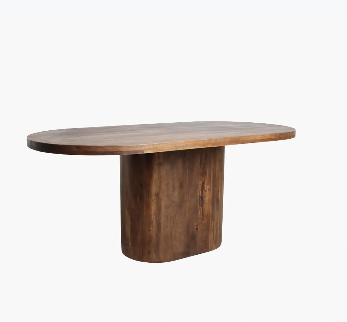 The modern MASE Oblong dining table is made of mango wood. The table has an oval shape, with the sides being rounded. This dining table is available in 180, 200, and 240 cm.
