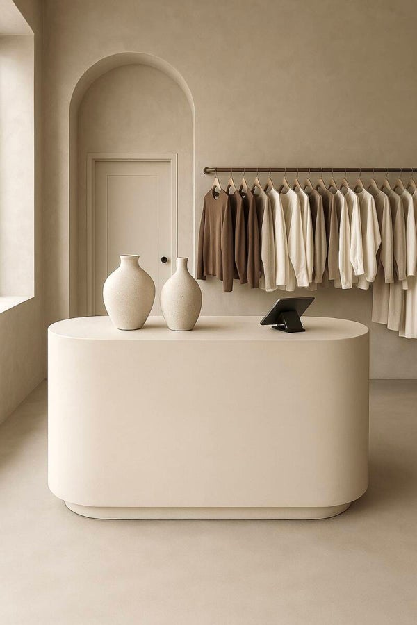 Geef jouw salon of winkel een luxe en tijdloze uitstraling met onze beton ciré balie, afgewerkt met een duurzame antibracitele coating. Deze balie is niet alleen een stijlvolle eyecatcher, maar ook praktisch ingericht voor dagelijks gebruik.