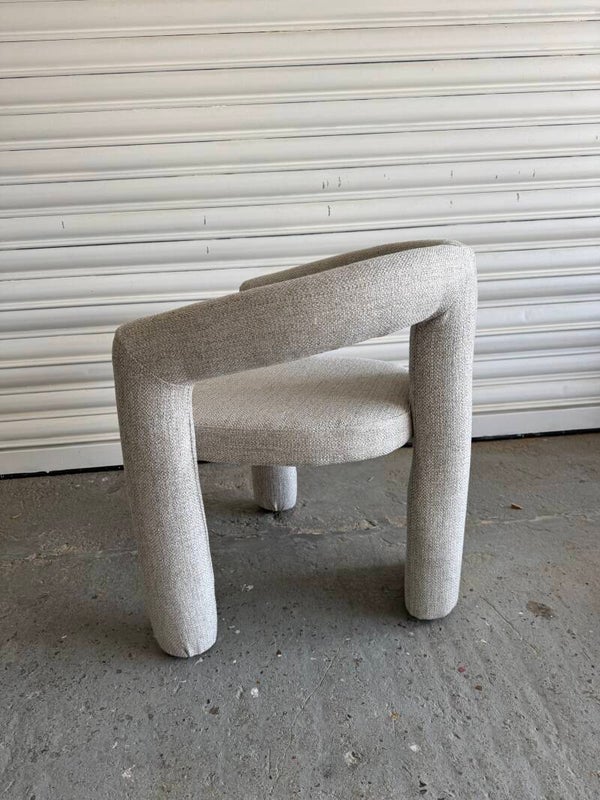 De luxe geweven stof voelt zacht aan en is perfect voor lange, gezellige avonden aan tafel. Dankzij de ronde, organische vormen past deze stoel naadloos bij onze béton ciré tafels.